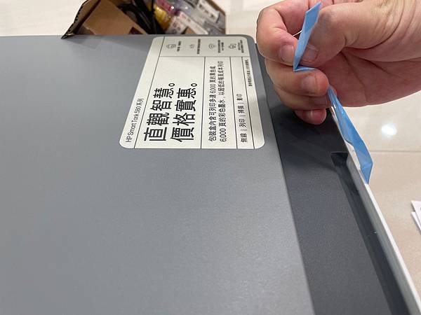 為了確保運送過程順利妥當,列表機有黏上藍色的膠帶,是撕下來完全沒有任何殘膠的質地。