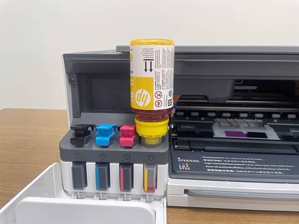 打開HP Smart Tank 580 All-in-one墨水匣時我大吃一驚,這是顛覆以往印象全新的設計,無論在視覺上還是實際使用上都非常舒適。