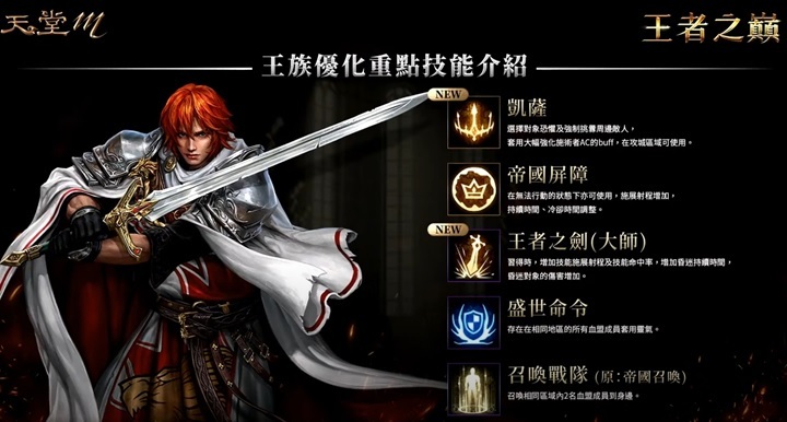 ↑王族多了許多關鍵技能,能夠增強自身素質的同時控場敵人的全新金技凱撒,跟相輔相成搭配凱薩使用的保命技能帝國屏障,讓王族在城戰中可以維持保命不被敵人攻陷,加上被更新的召喚戰隊,就算遇到敵方偷襲也能瞬間逆轉戰局!