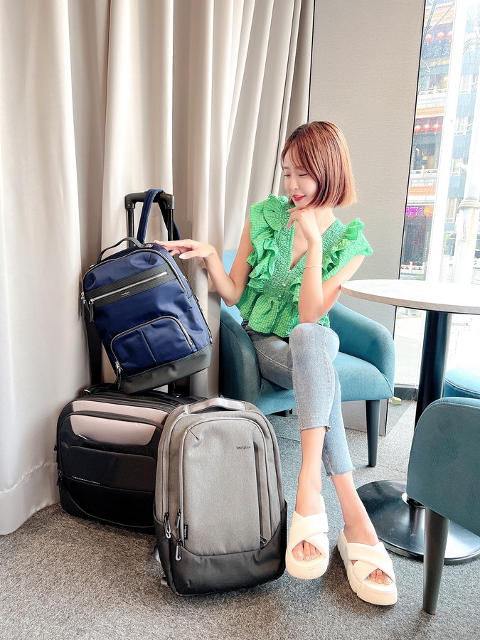 Targus Citygear 17吋 耐衝擊 DOME 商務拉桿箱 直接給它搭配另兩款 Targus 後背包,利用 後背包 都有的行李帶設計,套上拉桿箱的拉桿,怎麼搭配都合適,移動起來超輕鬆。