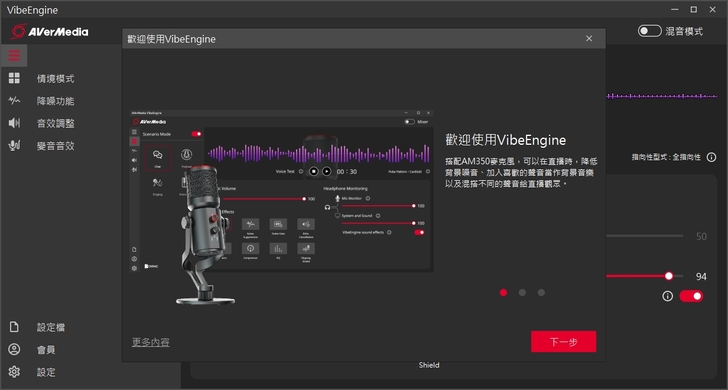 雖然是隨插即用,但如果想要體驗到 AM350最具特色的一點就是和瑞典知名調音大廠 DIRAC 合作,應用 DIRAC 的調音和音效技術就需要下載安裝 VibeEngine ,安裝這套軟體搭配 AM350 後,就可以進一步來調整聲音表現。