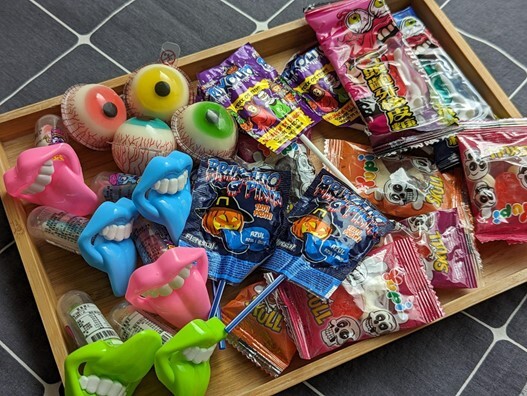 前幾天在輔導孩子們的作業的時候,聊到了萬聖節話題,他們說每年學校舉辦萬聖節活動準備的糖果都不夠有趣,每次就只有乖乖軟糖、沙士糖、硬幣巧克力,我雖然嘴上說有糖果就很好了啊~但是心理還是想說今年想買各種奇奇怪怪的糖果給孩子們不一樣的萬聖節回憶。