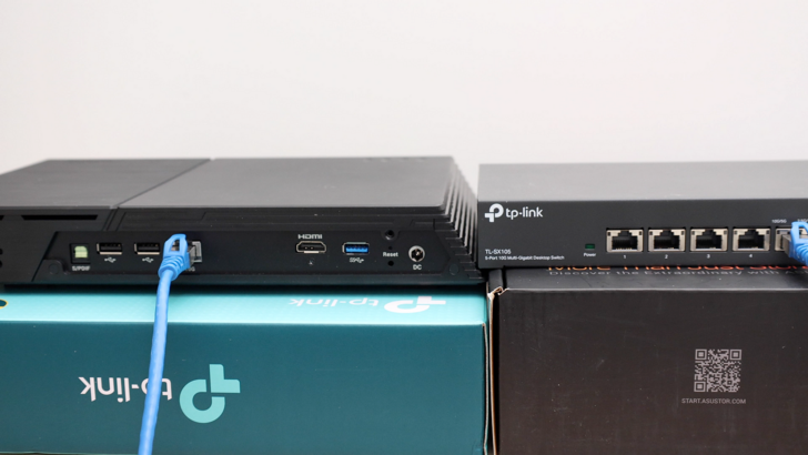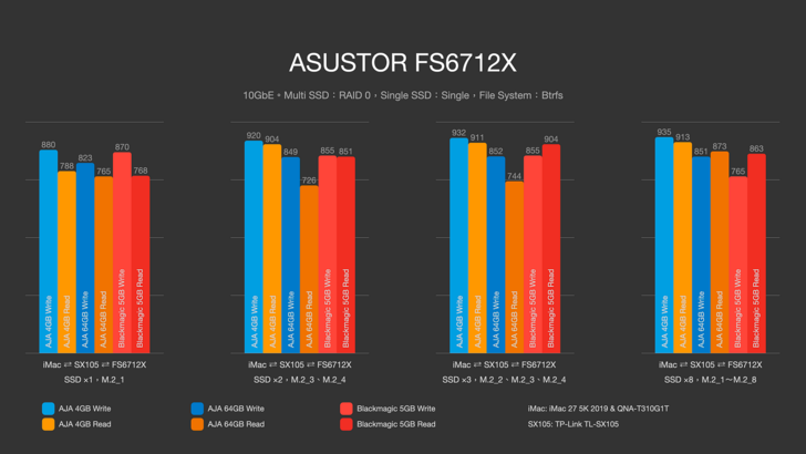 實測時,我主要使用 iMac 透過 Thunderbolt 轉接 10GbE 連到 TP-Link TL-SX105。再從 TL-SX105 連接到 ASUSTOR FS6712X,達成 10GbE。