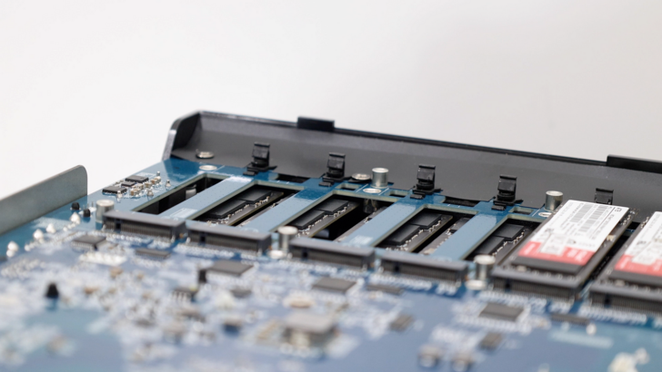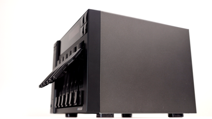 以 FS6706T 來說,相較傳統 6 Bay 3.5” 的機器真的小很多,那就更不用說高階的 FS6712X 在相同尺寸下可以裝到 12 條,真的很難想像體積可以壓到這麼小。當然在目前的市場價格來說,單位容量上 HDD 還是有絕對優勢。不過消費級的 SSD 相較以前真的是越來越便宜,加上 SSD 還有其他優勢。