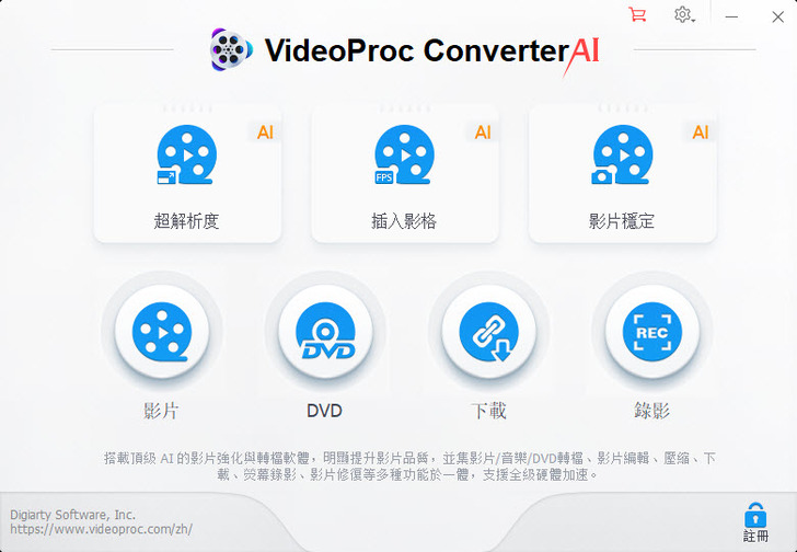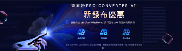 新版 VideoProc 登场!新增「超解析度」、「插入影格」、「影片穩定」三大AI影像增強 & 修復功能,一鍵讓您的影片變得更清晰、自然、穩定。重製老舊影片、SD、低畫質影片/圖片,支援轉檔大容量影片與 4K 影片。搭配 Level-3 硬體加速技術,快速解決任意影片品質、格式、檔案大小難題。它也是一套集影音/DVD 轉檔、增強、修復、去抖動、編輯、壓縮、下載與熒幕錄影功能的一站式解決方案。