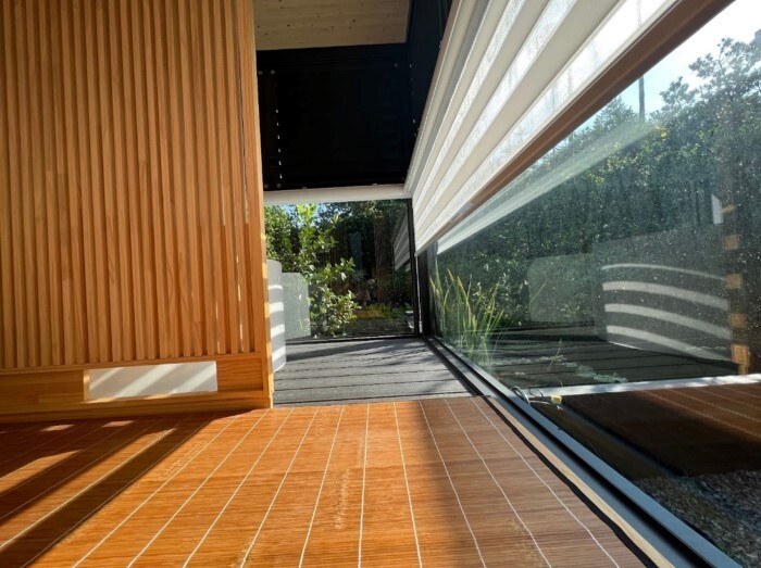 至於兩邊為什麼會有那麼大片的百葉窗,專員有特別說到因應台灣潮濕悶熱的天氣,他們很注重空氣流通這一區塊,上下大面積百葉窗設計不只防止屋內水氣堆積,居住在裡面的人也能感覺到舒適涼爽不悶熱