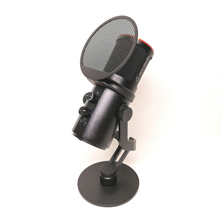 ▼ 圓剛 AM350 裝上底座後,非常的高雅有質感,而且不論麥克風怎麼轉向移動,整體都很穩定。
