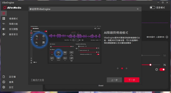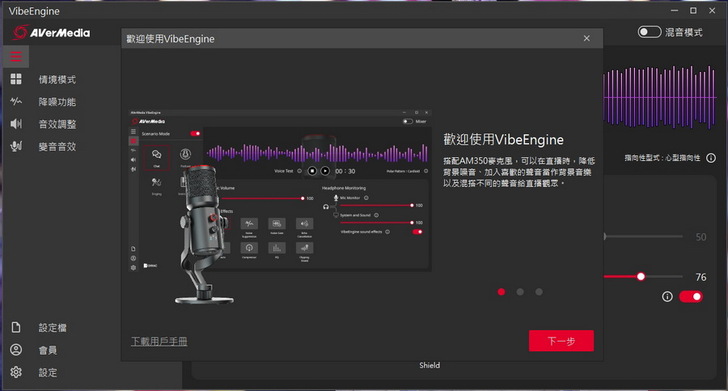 .支援音效軟體VibeEngine:包含廣泛的音效選擇以及進階音效設定,滿足所有直播與錄製需求