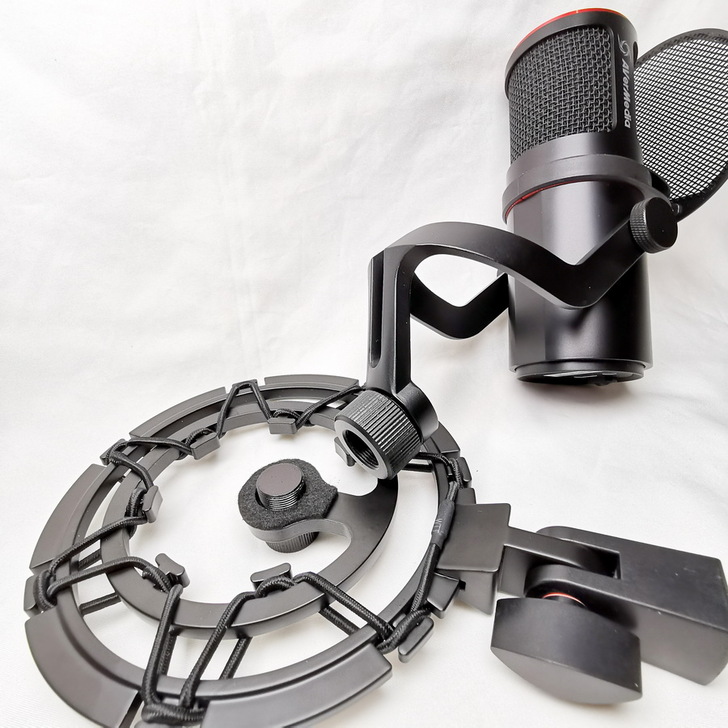▼ 除了 圓剛 AM350 黑鳩 USB 電容式麥克風,另外還有 專業防噴罩、高效防震架。