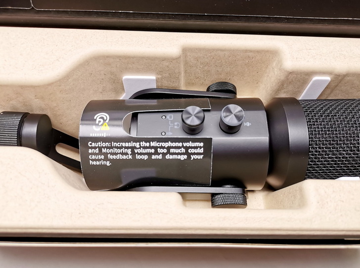 ▼ 環保材質的內盒,AM350 電容式麥克風 本體,還有用防震膠條固定。