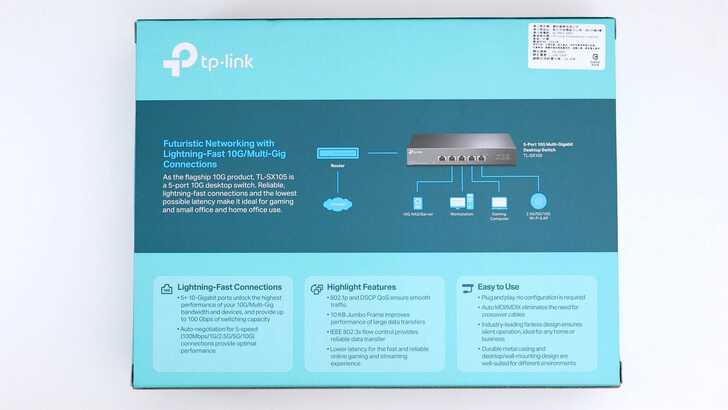 TL-SX105 有 TP-Link 三年保固。像這類無網型的交換器,優勢就是價格便宜。當然相對來說,他也沒有軟體可以設定。另外我覺得 Multi-Giga 規格的好處,不僅可以讓主要幾台高階 NAS、桌機都能連上 10GbE,如果之後測試到比較中低階入們的 NAS,也可以支援 5GbE、2.5GbE,有滿大的彈性。
