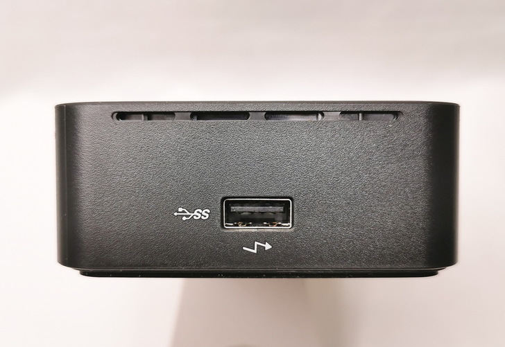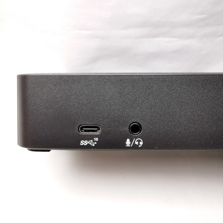 ▼ Targus DOCK182 正面 - 僅在左方有 一個 USB 3.2 Gen 2 Type-C 連接埠,另一孔為 3.5mm 音源輸入/輸出。