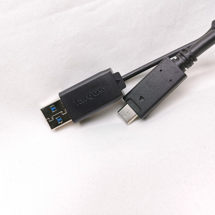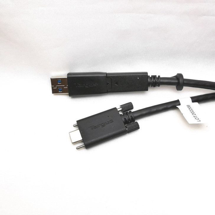 ▼ 雙用傳輸線 在連接 Targus DOCK182 那端有雙螺絲可以固定,另一端的 USB-C 如果筆電或PC主機 沒有 Type-C孔 的話,可以直接轉接成 USB-A 連接。