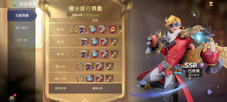 只要你夠強在排名上拿到第1~5名又能多拿免費的SSR