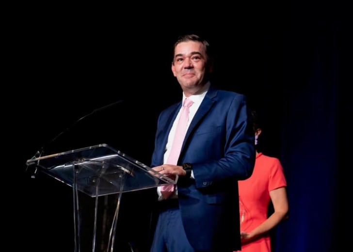 圖說:在德克薩斯開拓者年度午餐會上,玫琳凱全球首席執行官,玫琳凱·艾施基金會董事會成員Ryan Rogers被授予德克薩斯開拓者獎。該獎項旨在表彰在當地產生積極影響,提高民眾終結家庭暴力意識的人士。(圖/玫琳凱)