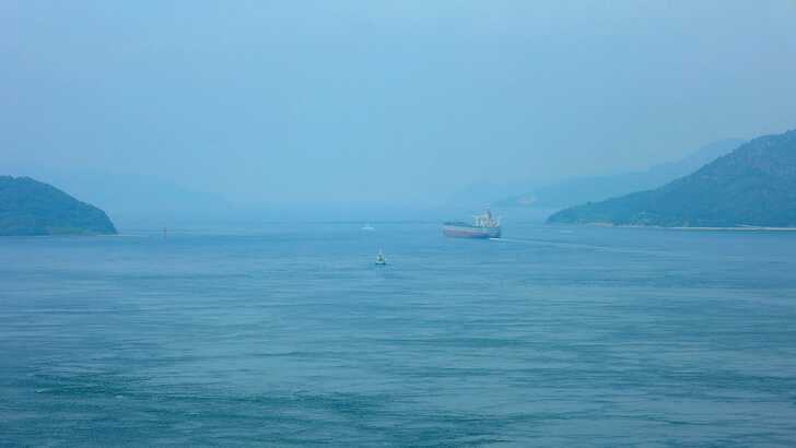 航程約兩個小時半,中間經過豊後水道和宇和海可以說是完全沒網路訊號。所有具備網路的手機,即便偶爾顯示有訊號,通常都不太穩定、幾乎沒在跑,實際上都是無法上網的。船上有提供 WiFi,不過登入稍微麻煩且有限時間斷網,因此還是選擇在船上逛逛。即便遇到下雨,無法有較多時間待在甲板上,船內的設施和空間,也足夠兩個半小時走走、娛樂。比起前面提到的山田線,也是差不多的車程,在深山沒有網路的情況下,基本上只能睡覺。