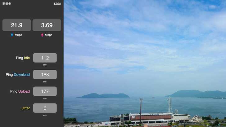 第二十二個測試點在兵庫県神戸市的知名景點,明石海峽大橋。實測下載速度 4.96Mbps,上傳速度 4.31Mbps。Ping Idle 為 118ms,Ping Jitter 為 11ms。