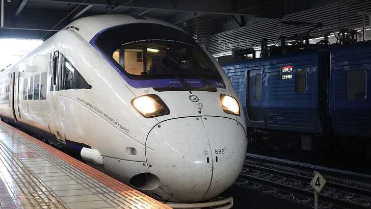 圖為在博多駅準備發車的 Relay Kamome(885 系),最終比預計晚了十分鐘到達武雄温泉駅。不過準備銜接的 Kamome(N700 系)並沒有按照原訂時間開走,同樣等待了三分鐘左右才發車,最終到達長崎駅只晚了七分鐘。