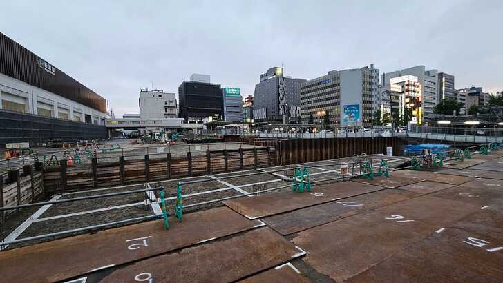 新潟車站前有很大的空間,不過在施工,行人空間比較小,期待之後改建完成的新樣貌。