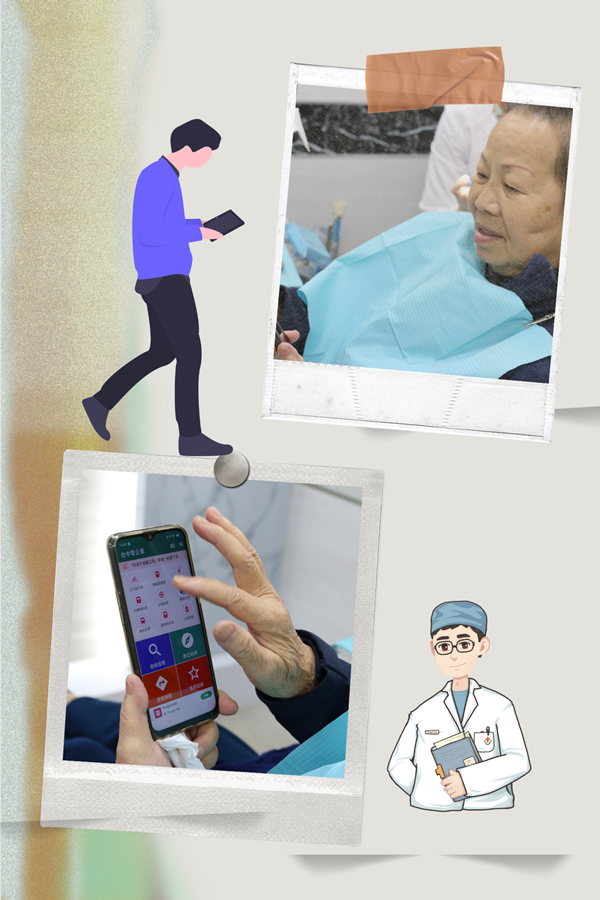 植牙醫師檢查奶奶口腔時動作都會放輕深怕弄疼奶奶,當害怕時也會安撫奶奶情緒讓他放輕鬆
