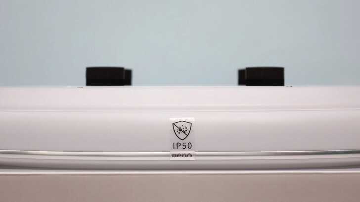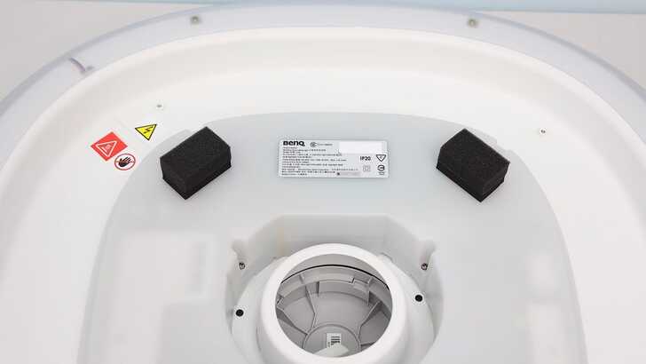燈罩周圍有一圈銀色飾條,銜接上、下層燈罩連接的視覺。上面有 BenQ Logo 以及 IP50 的標示,有防塵能力,也避免蟲進入燈具內。