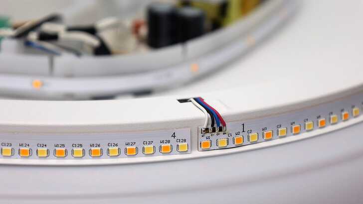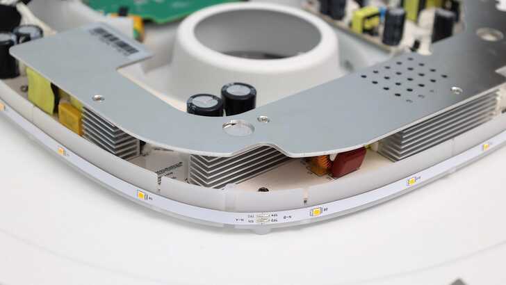 頂部外圈有 256 顆 LED 燈珠,白、黃交替排列,各 128 顆。那麼規格標示判斷,下方區域應該有 352 顆 LED 燈珠。