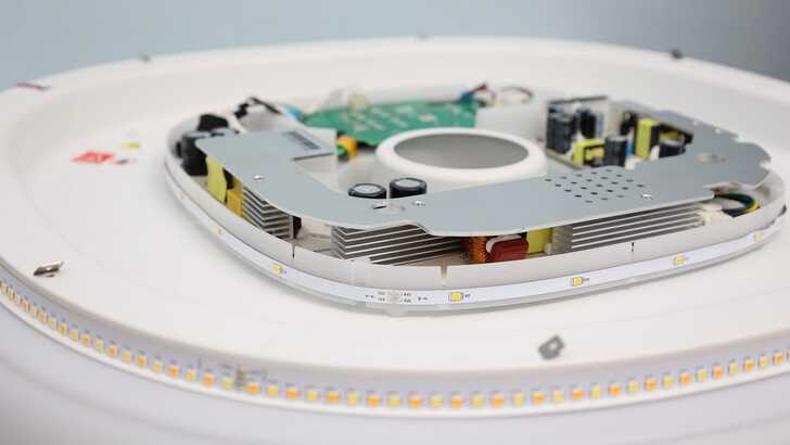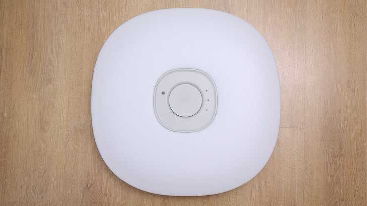 BenQ Aora 吸頂燈本體,與大多吸頂燈不同的是,其在中間有一圈面板,而非 100% 的燈罩。這樣的設計,也讓 Aora 在交互上以及安裝時有更多可能性。