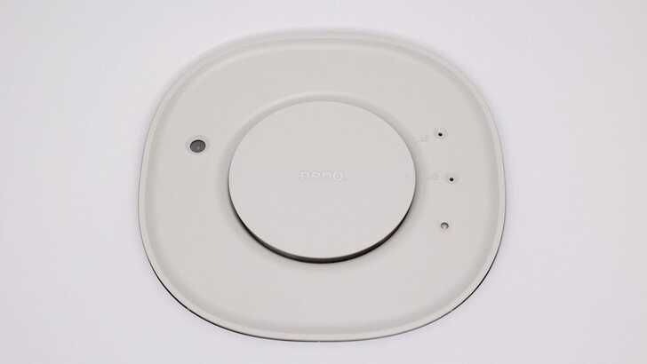 Panel 中心是飾蓋,後續安裝會看出他的用途就是蓋子,中間有 BenQ Logo。左邊比較大的圓形是紅外線感應器,接受遙控器以紅外線的操作。右邊由上至下,第一顆和第兩顆皆為麥克風,用於語音辨識。最下面的則是光源感應器,用以偵測環境亮度,自動調整 Aora 亮度。由於這樣特殊的設計,讓他與大多平價吸頂燈,或是同價位競品多出一些功能,如:語音操作。