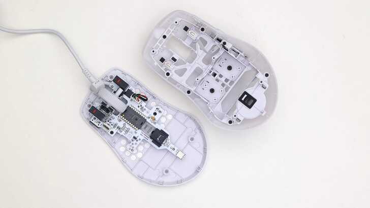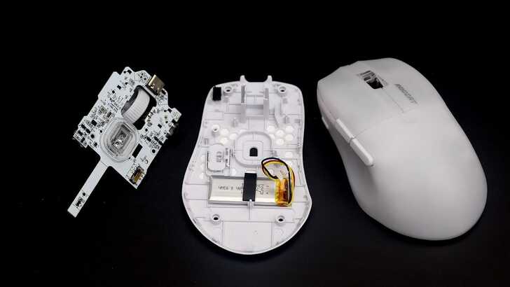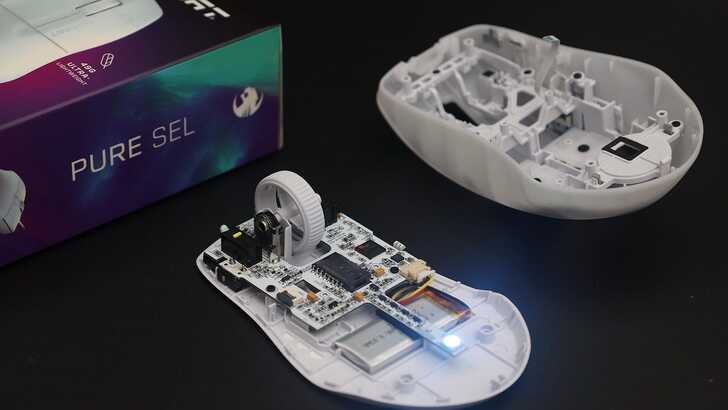 另外也拆解了 ROCCAT PURE SEL,與 PURE Air 最大的差異就是接頭部分採有線連接,且 PURE SEL 是沒有電池的。此外,PURE SEL 的微動開關是紅色,也與 PURE Air 不同。