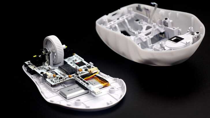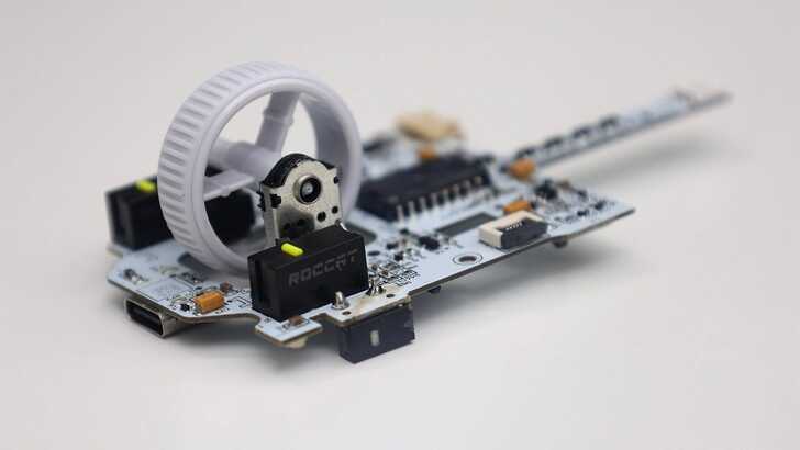 轉開後就可以看到 ROCCAT PURE Air 內部零件,比較明顯的大概就是滾輪、微動開關、CMOS、DSP 以及電池。
