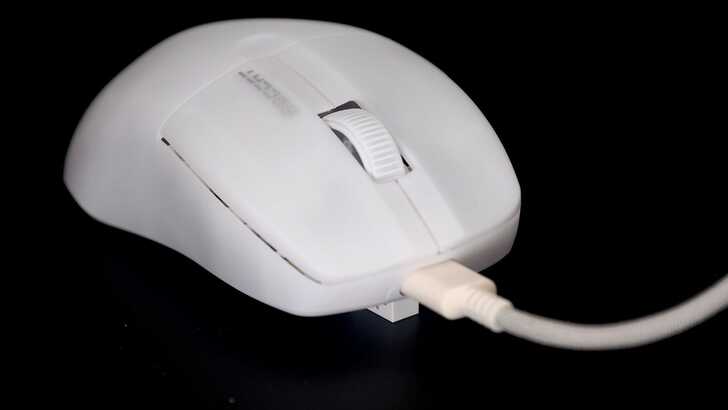 在無線接頭方面,ROCCAT PURE Air USB-C 連接埠做的比較深,我覺得好處是較不會有髒汙跑進去,但插線有時需要找一下位置。另外如果是白色款,USB-C 接頭和滑鼠本體有一點色差,像圖片呈現的那樣。