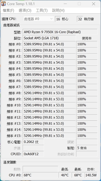 AVX重度負載約207W左右,時脈4.6-4.7G左右溫度約92度