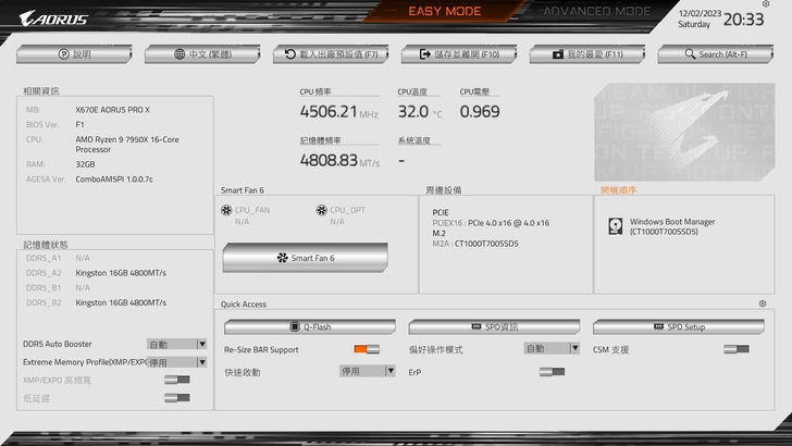 BIOS 也改成白色底如 Z790 PRO X 相同