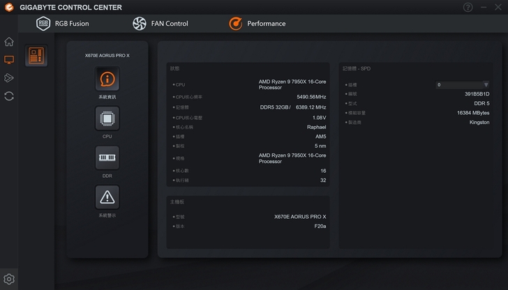 新版的軟體控制中心,可惜沒有搭配板子進行白化設計