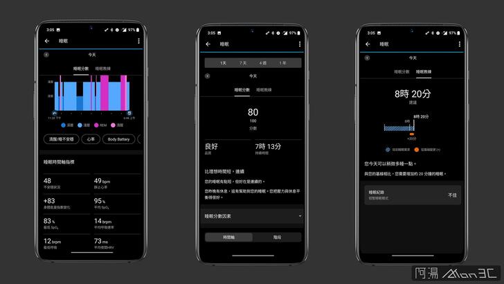 Body Battery 配合睡眠紀錄,讓 Garmin Venu 3 能夠適時給予睡眠建議,當手錶發現你睡眠不足時,會用睡眠教練建議用戶增加睡眠的時長。且因為 Garmin Venu 3 的配戴存在感不強,讓我能夠連續配戴睡覺也不會感到不適。至於準確度部分,我覺得評估的挺準的,就算是起床賴在床上,他也能夠正確判斷起床時間。當天起床如果還是很累,回頭看睡眠分數確實是有比較低的。