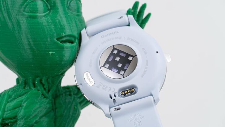 看到背面,這就是 Garmin 最新第五代的感測器,支援 ECG、血氧、心率、HRV、皮膚溫度等健康資訊的檢測,相當的完整,如果能再補上身體組成的話那就完美了。
