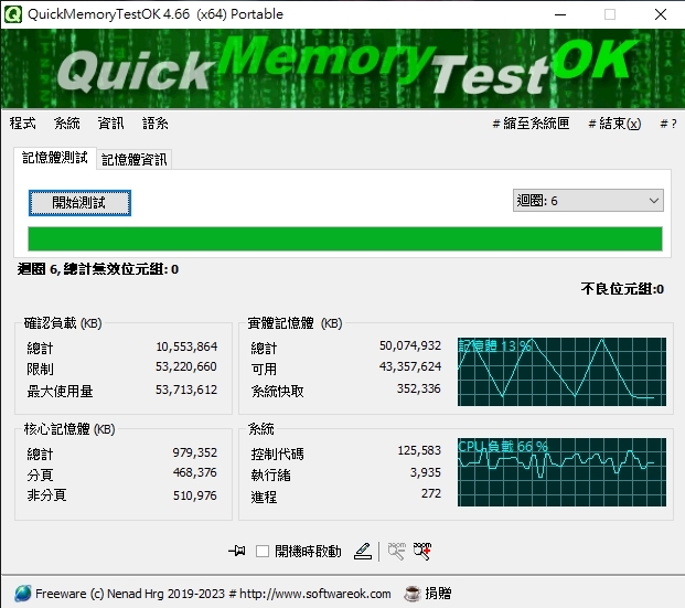 ▼ QuickMemoryTestOK記憶體檢測工具,可以查看記憶體資訊,測試後也完全正常。