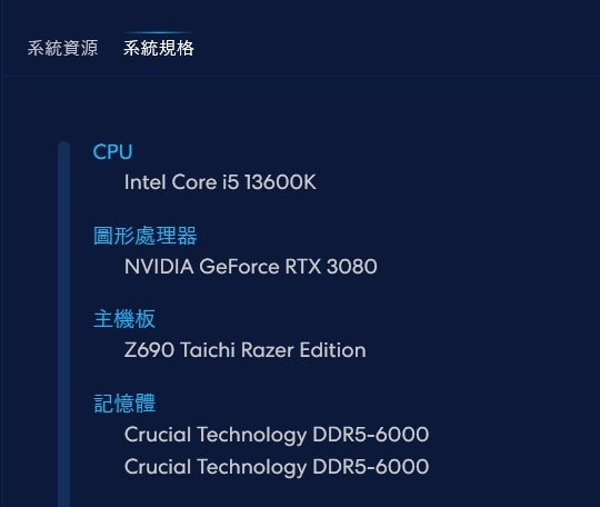 ▼ 進入應用程式的系統規格,也可以看到記憶體為 Crucial Pro DDR5-6000。