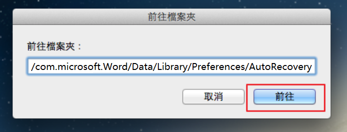 導航到/Users//Library/Containers/com.Microsoft.word/Data/Library/Preferences/AutoRecovery 資料夾: