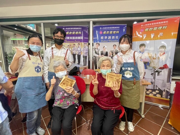 活動現場充滿了對長者的溫暖關懷和細心服務,各種美味點心更是受到了社區居民的 廣泛好評,歡笑聲此起彼落,場面熱鬧非凡。餐飲科主任林姿岑表示,這不僅僅是一場單一的活動,更是將學習與實務相結合的一次難得經驗,期望透過這樣的社區服務,培養學生具備更全面的專業素養。