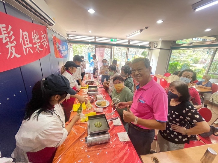 在健康養生飲品的介紹中,包括了養氣茶、養顏美容桂圓紅棗茶、以及麥茶和仙草茶。 現場學生與長者一同參與製作美味的銅鑼燒,特別結合當地特色,製作紅趜銅鑼燒和抹 茶銅鑼燒,為整個活動增色不少。