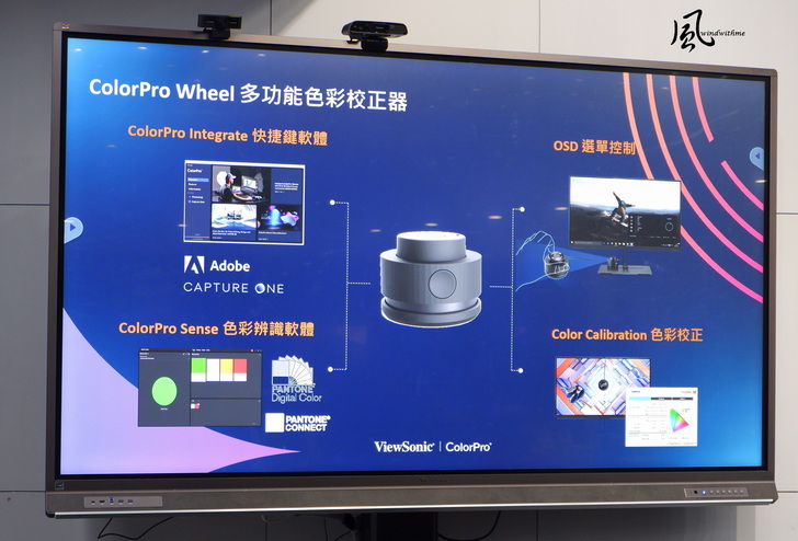 體驗會剛開始先介紹ViewSonic以軟體、硬體及服務達成完整生態系為宗旨,於現場展演ColorPro最新色彩管理解決方案,運用專屬於VP2776與VP2786-4K的新一代ColorPro Wheel色彩校正器來達到色彩校正、OSD控制。