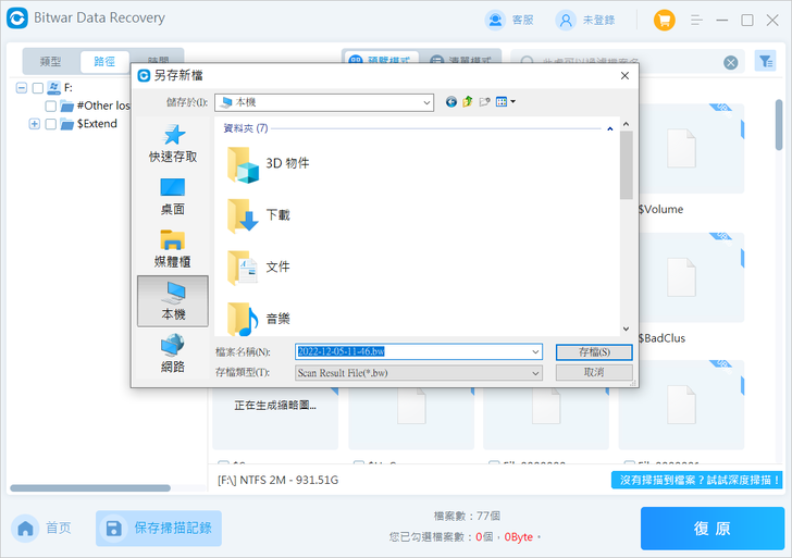 Bitwar檔案救援軟體官網:https://www.bitwarsoft.com/zh-tw/data-recovery-software