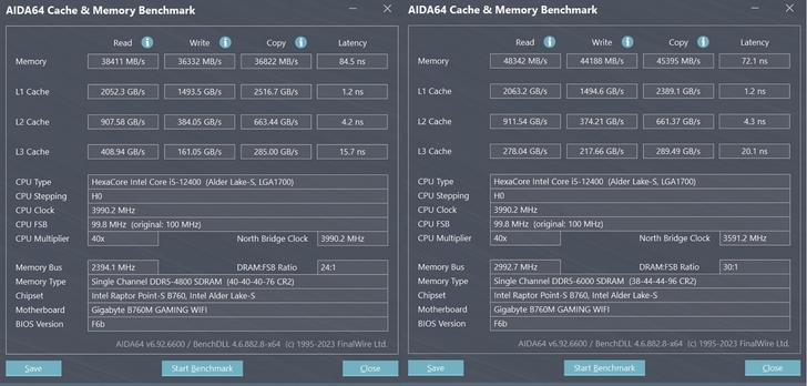 AIDA64 Memory Benchmark D5-4800 vs D5-6000