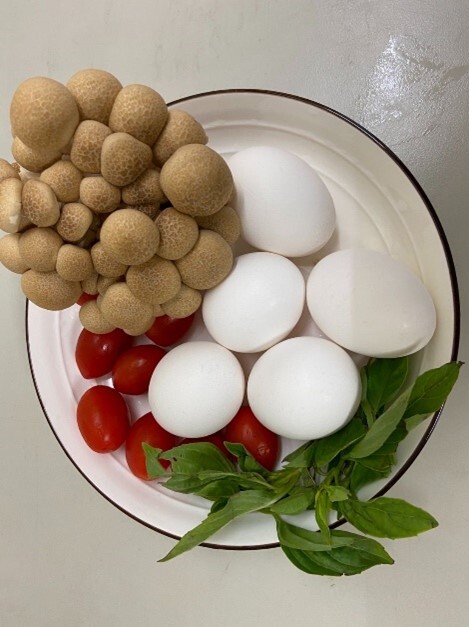 最上層鋪滿九層塔跟切片小番茄做點綴