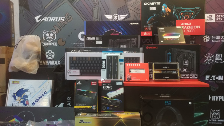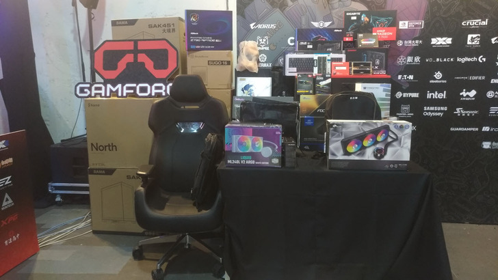 有各式電競椅、水冷、主機板等等的 待購票者闖關完畢來抽
