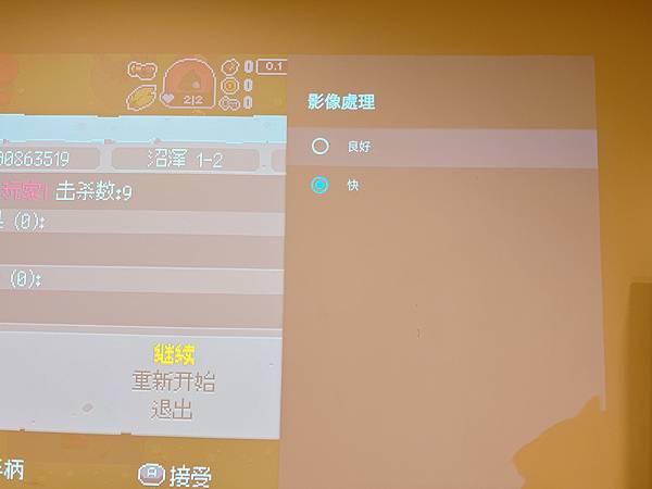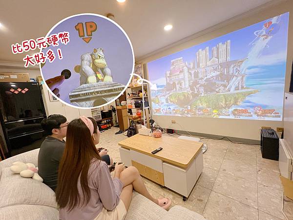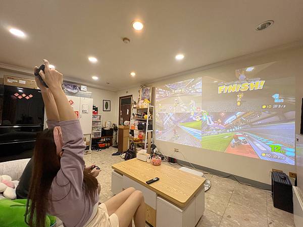 有動作遊戲低延遲需求(如大亂鬥、瑪力歐等),可以從投影機設定中選擇「圖像」>「影像處理」>把「良好」改成「快」,即時的操作反饋真的大勝多數投影機✨ 賽車、射擊遊戲操作都很順暢、行雲流水的絲滑~*IPhone 13 pro拍攝,晚上室內燈全亮