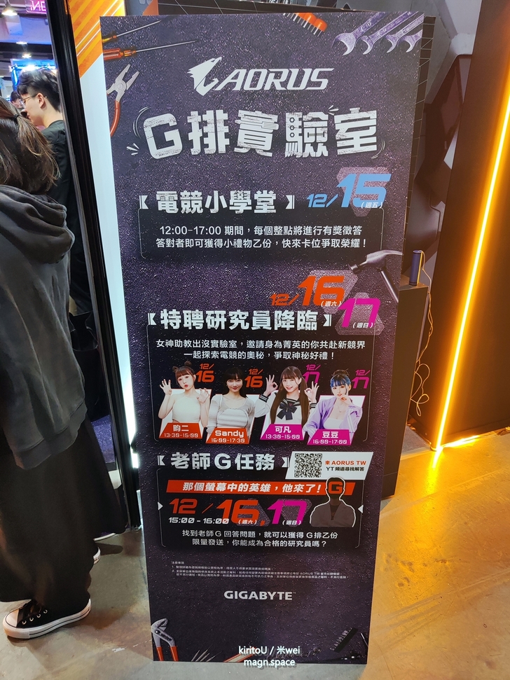 這次廠商有變得更多些,在活動現場依舊很多的展示體驗、互動遊戲、攤位活動,像是ASRock傳家寶免費拿、ZOTAC的每天ZO太多、AORUS的G排實驗室……等,好多攤位活動都好有吸引力,一樣是需要時時的注意時間,有些還是會有時間上的衝突。