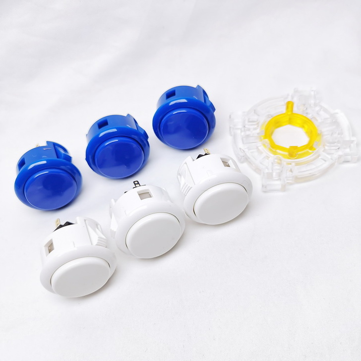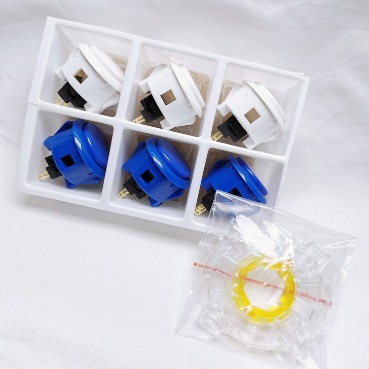 ▼ 新購買的 三和 八方檔板及靜音按鍵,靜音按鍵僅買了最常按的六顆,用來更換 快打旋風6 最常按到的 三拳及三腳。