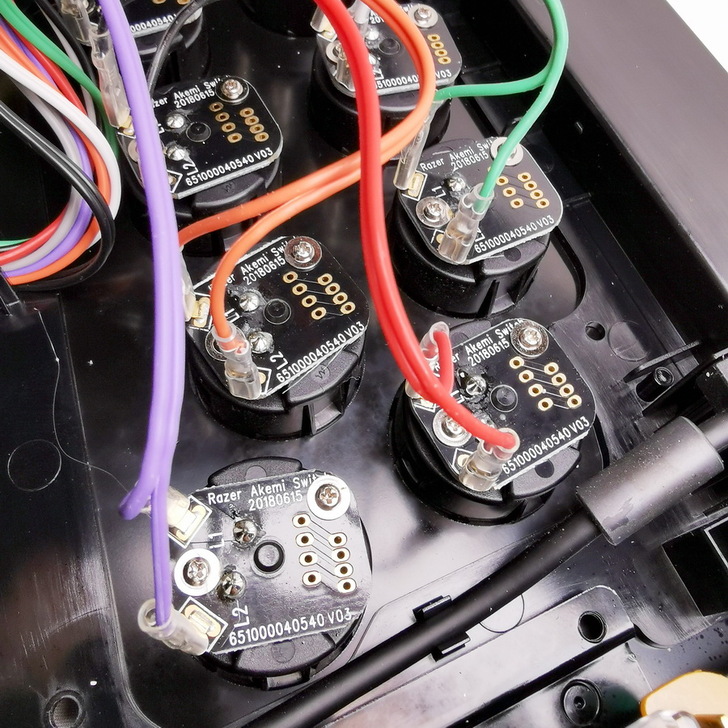 ▼ 拆開以後可以看到按鍵全都是 Razer 機械鍵軸,上面也都有 Razer 字樣。